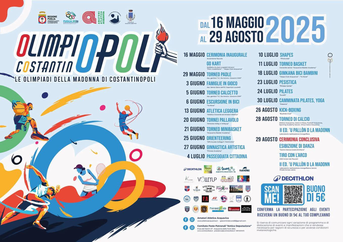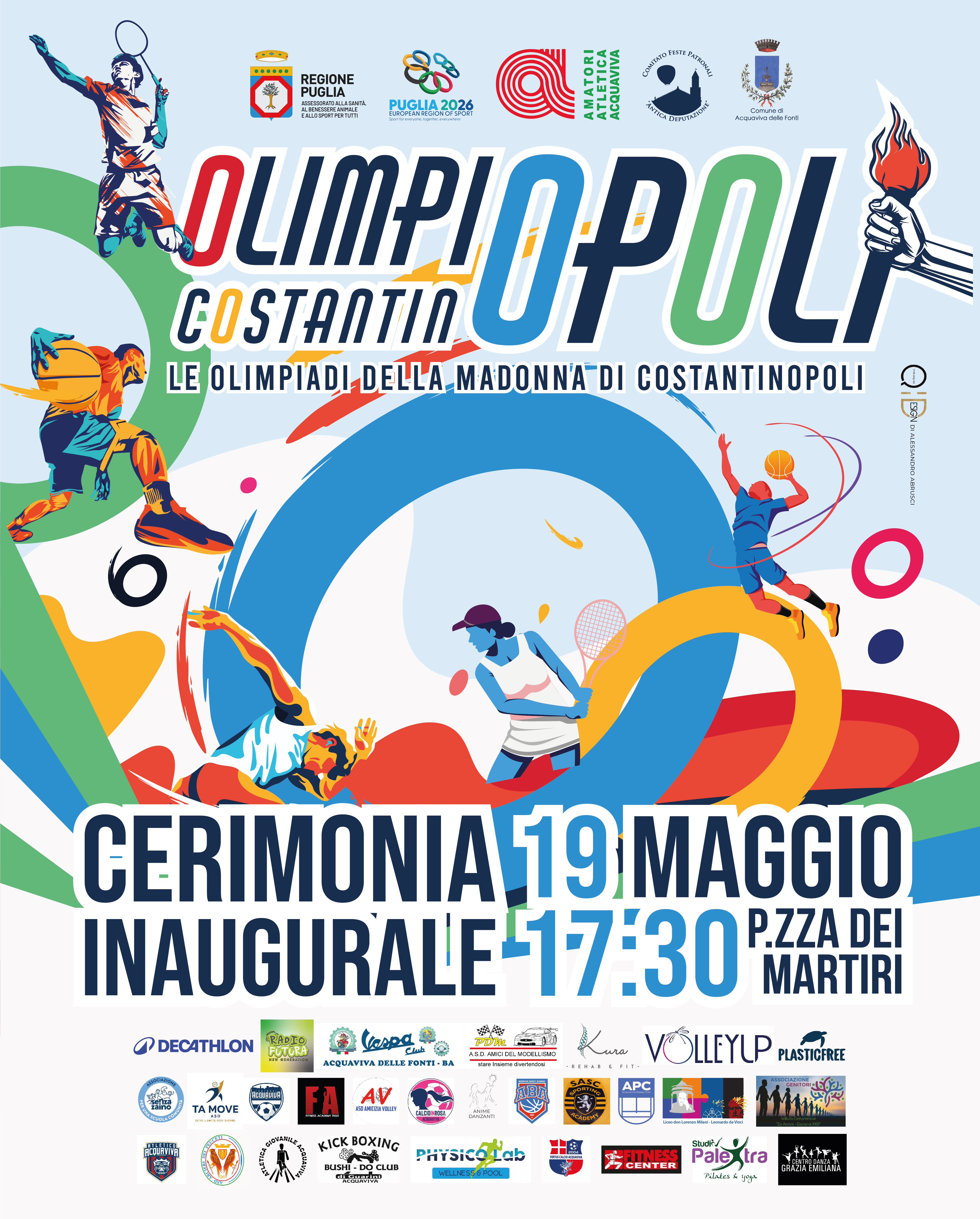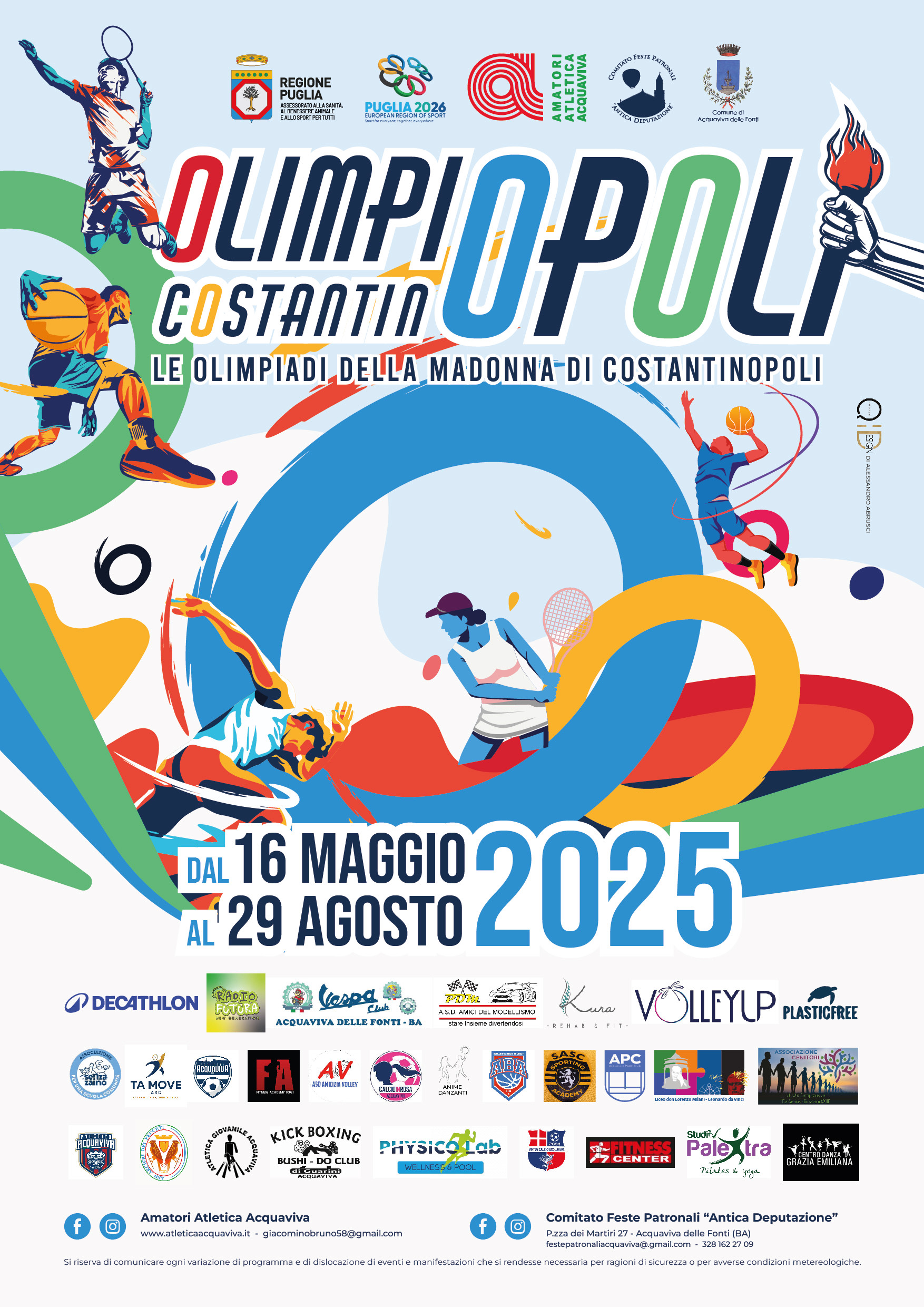 L’Amatori Atletica Acquaviva ed il Comitato Feste con l’Amministrazione Comunale vi invitano a partecipare alle Olimpiadi Cittadine organizzate in occasione delle Feste Patronali: giornate di sport, amicizia e divertimento aperte a tutti.